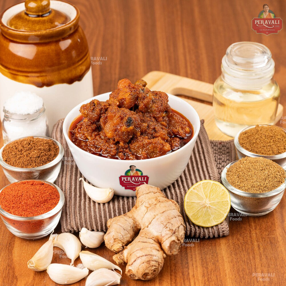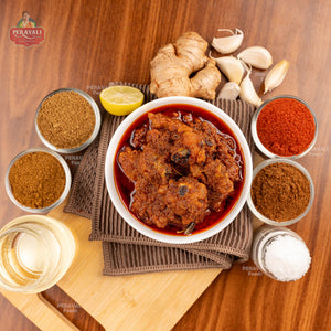 True to its roots, our Kodi Pickle is made with tender chicken pieces on the bone, just like how it's prepared in Andhra family kitchens. Cooked slowly twice in aromatic spices and every piece absorbs the rich flavours of our signature masala.
