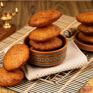 Our Kobbari Boorelu are just like the ones that greeted you after a long journey home—amma pulling them fresh out of the kadai, the scent of roasted coconut and jaggery filling the air. Crisp on the outside, soft and rich inside, these deep-fried delights were always saved for special moments—and now, you don’t have to wait. We bring them to your doorstep, made the traditional way, packed for everyday indulgence.