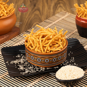 These were the chekralu made for special guests—thicker, more fragrant, and with that unmistakable richness of minapappu (urad dal). You could smell them even before you entered the kitchen—golden discs of comfort, crisped to perfection. At Peravali, our Minapappu Chekkalu carry forward that same respect for tradition, made in small batches and packed with care.