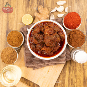 Crafted from tender, hand-trimmed mutton pieces, this pickle is a tribute to those who love the rich taste of meat without the hassle of bones. We slow-cook the meat in blending it with our signature Andhra masalas until every piece is steeped in bold, lasting flavor.