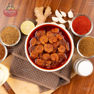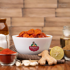 A cherished specialty from coastal Andhra households, our Prawns Pickle is made from freshly cleaned prawns, gently pre-cooked and then sautéed twice in cold-pressed sesame oil. This careful method allows every prawn to soak up the tangy, spicy masala and hold its chewy, juicy texture.
