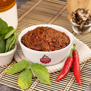 తాజాగా పండించిన గోంగూర (సోరెల్ ఆకులు) మరియు పండిన ఎర్ర మిరపకాయలు (పాండుమిర్చి) తో తయారు చేయబడిన ఈ ఊరగాయ తెలుగు వంటకాల యొక్క రెండు చిహ్నాలను ఒకచోట చేర్చుతుంది. గోంగూర దాని సిగ్నేచర్ టాంగ్ మరియు గాఢతను జోడిస్తుంది, అయితే ఎర్ర మిరపకాయలు మీ నాలుకపై ప్రేమగా నిలిచి ఉండే మండుతున్న వెచ్చదనాన్ని అందిస్తాయి. కలిసి, అవి లోతైన సంతృప్తికరమైన మరియు నిస్సందేహంగా ఆంధ్రా రుచినిచ్చే పంచ్, పొరలుగా ఉన్న ఊరగాయను సృష్టిస్తాయి.